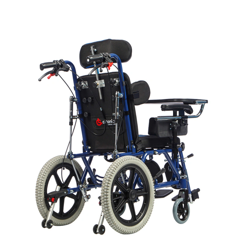 • Ручки для сопровождающего лица, оснащенные рычагами для плавной регулировки угла наклона спинки и сиденья и системой торможения