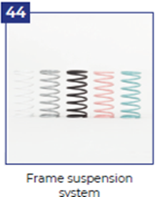 - Амортизаторы колес (в соответствии с весом ребенка (до 15 кг, 15-25 кг, от 25 кг), варианты цветов: черный /белый /в цвет обивки (44)