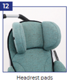 - Поддержки для туловища, бесступенчатая регулировка по высоте и ширине (размер 1: 8 x 10 x 2 см, размер 2: 10 x 12 x 2 см) (15)