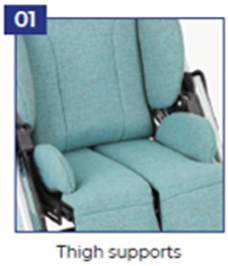 - Высокие бедренные поддержки с функцией подлокотников, регулируемые по ширине и глубине (высота поддержек 20 см) (02)