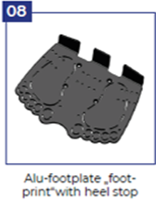 - Опора для стоп с бортиком для пяток (нет бортика сбоку) ширина опоры на выбор: #1=27 см, #2=29 см, #3=31 см, #4=33 см
