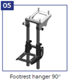 - Короткая подножка, фиксированная по углу наклона 90° с кронштейном и фиксатором опрокидывания подножки (длина голени 15-36 см)