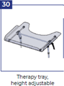 - Терапевтический столик, прозрачный, регулируемый по высоте (возможно только с держателем для принадлежностей И возможно только с сиденьем, установленным по направлению движения, !!! возможно использование с бедренными поддержками) (30)
