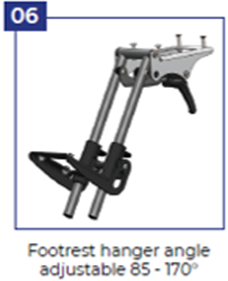 - Короткая подножка, регулируемая по углу наклона 85 - 170° с кронштейном и фиксатором опрокидывания подножки (длина голени 15-36 см)