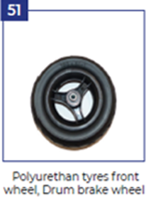 - Полиуретановые колеса с черным ободом, 5-спиц, с барабанным тормозом, с функцией блокировки (51)