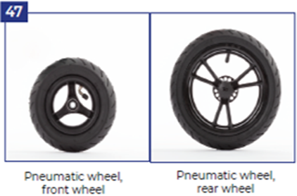 - Пневматические или полиуретановые колеса (литые) передние и задние колеса ) с ободами 6-спиц (47)