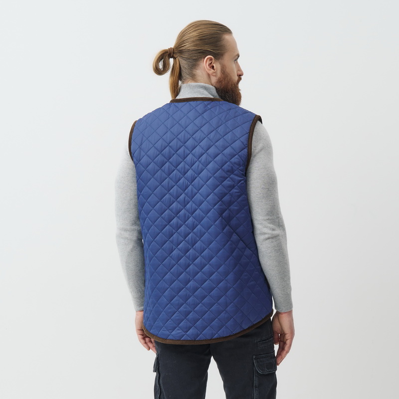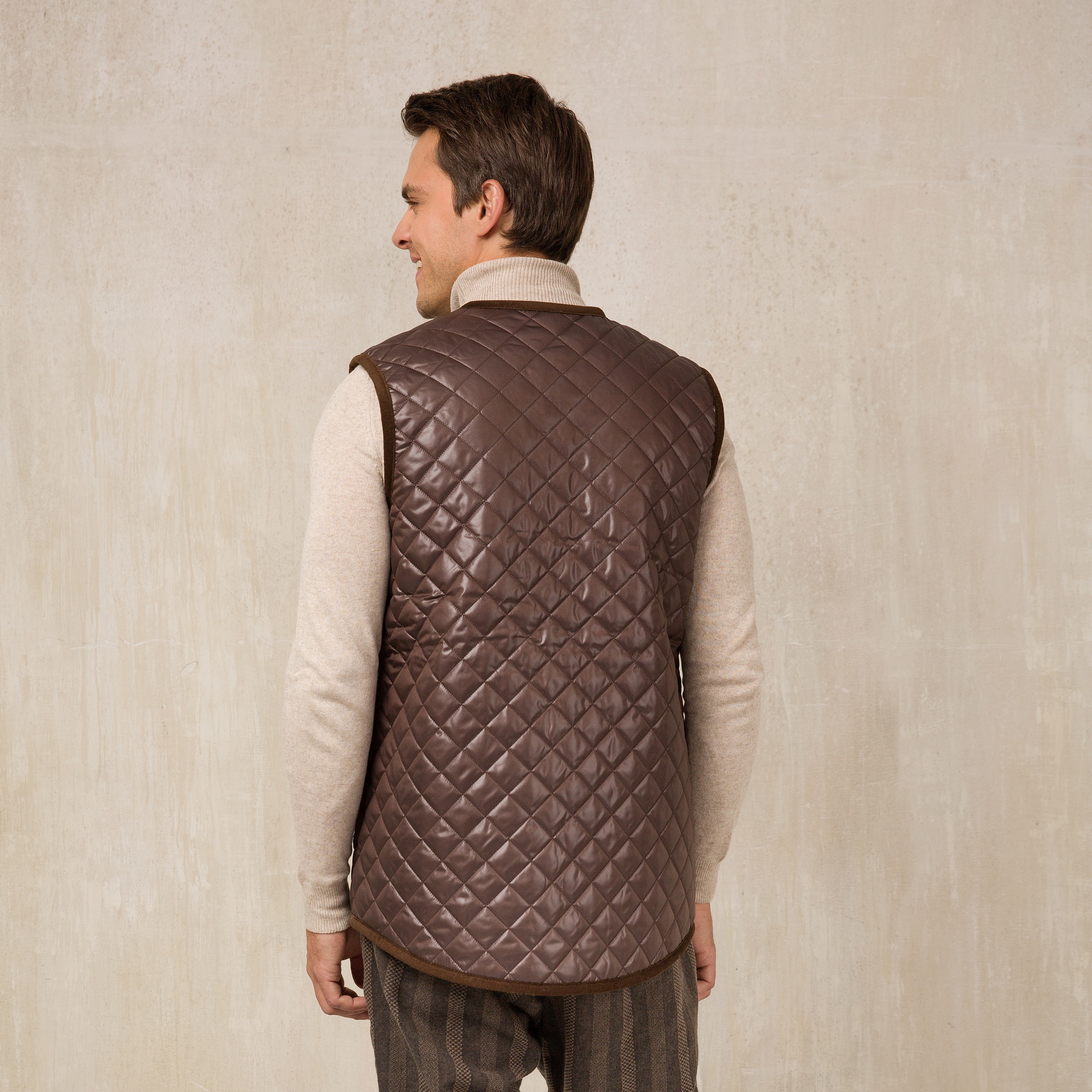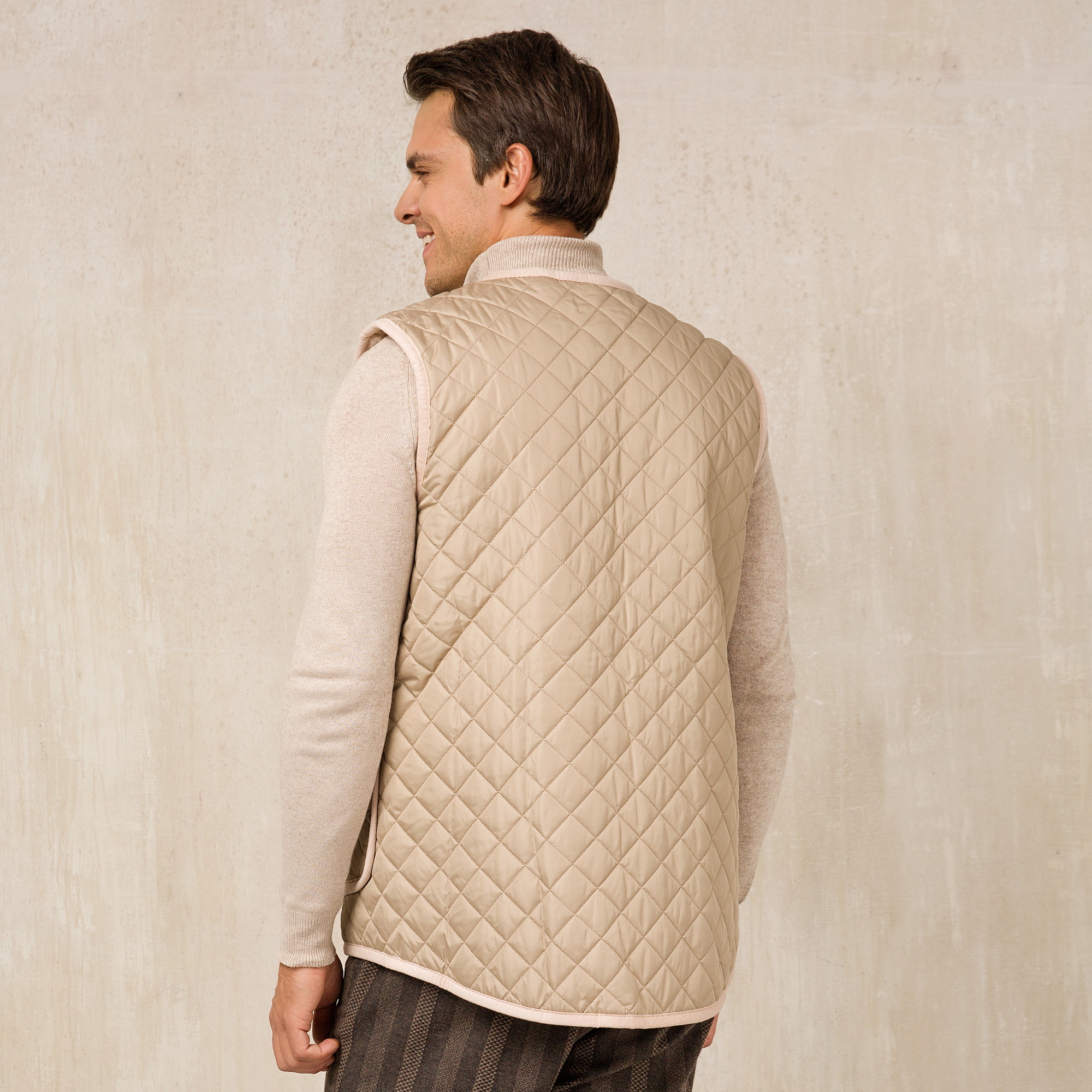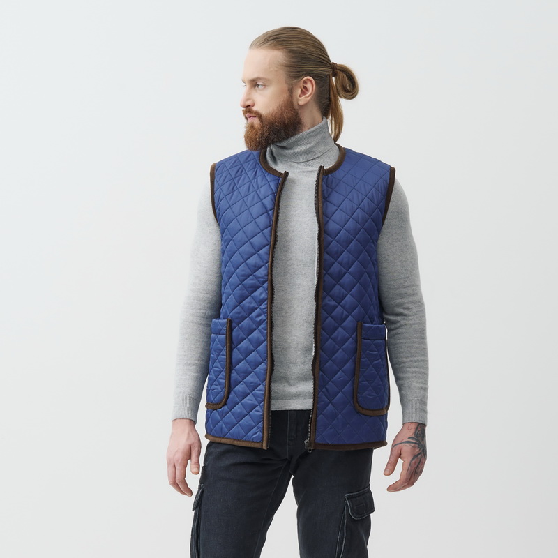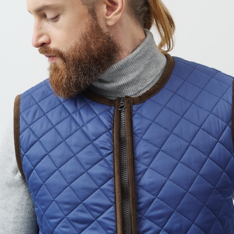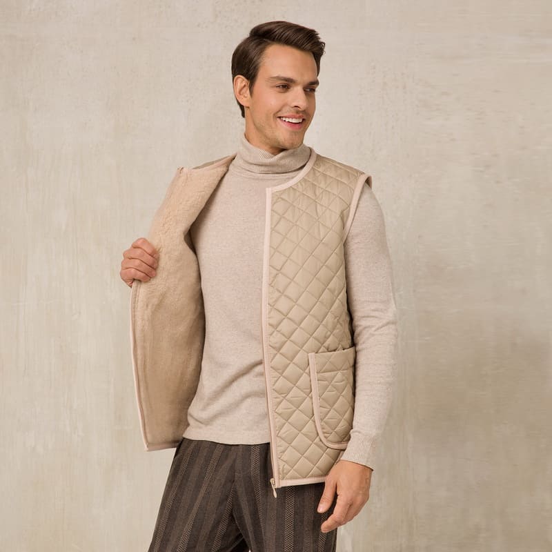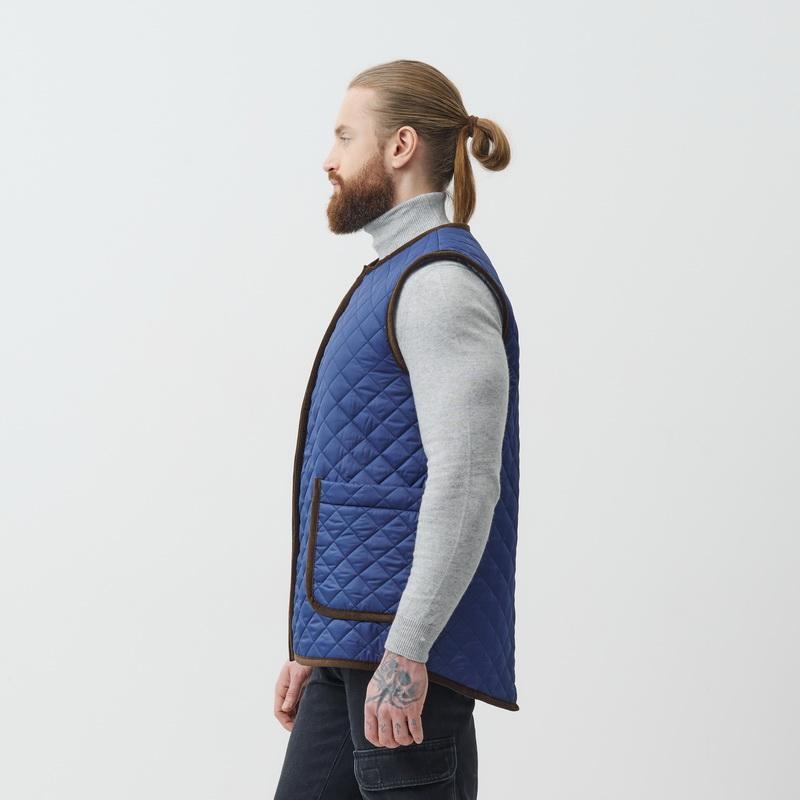 Универсальный жилет прямого силуэта из плащевой стеганой ткани. Подкладка - трикотажное полотно с чистошерстяным ворсом.